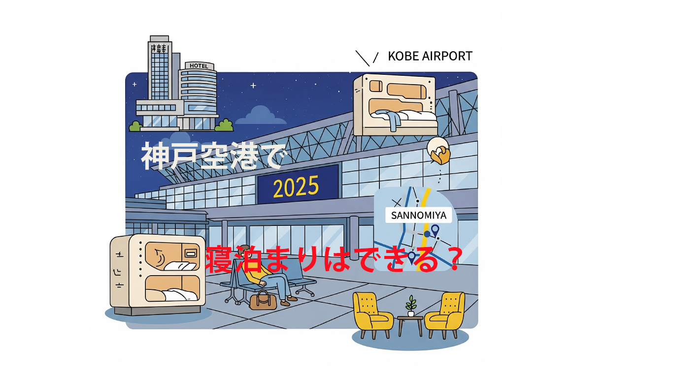 神戸空港を利用する際、深夜や早朝便の前後に「空港で寝泊まりできるのか?」という疑問を持つ方も多いはず。2025年現在の最新情報をもとに、空港内の滞在可否と三宮周辺の仮眠・宿泊スポットを詳しくご紹介します。