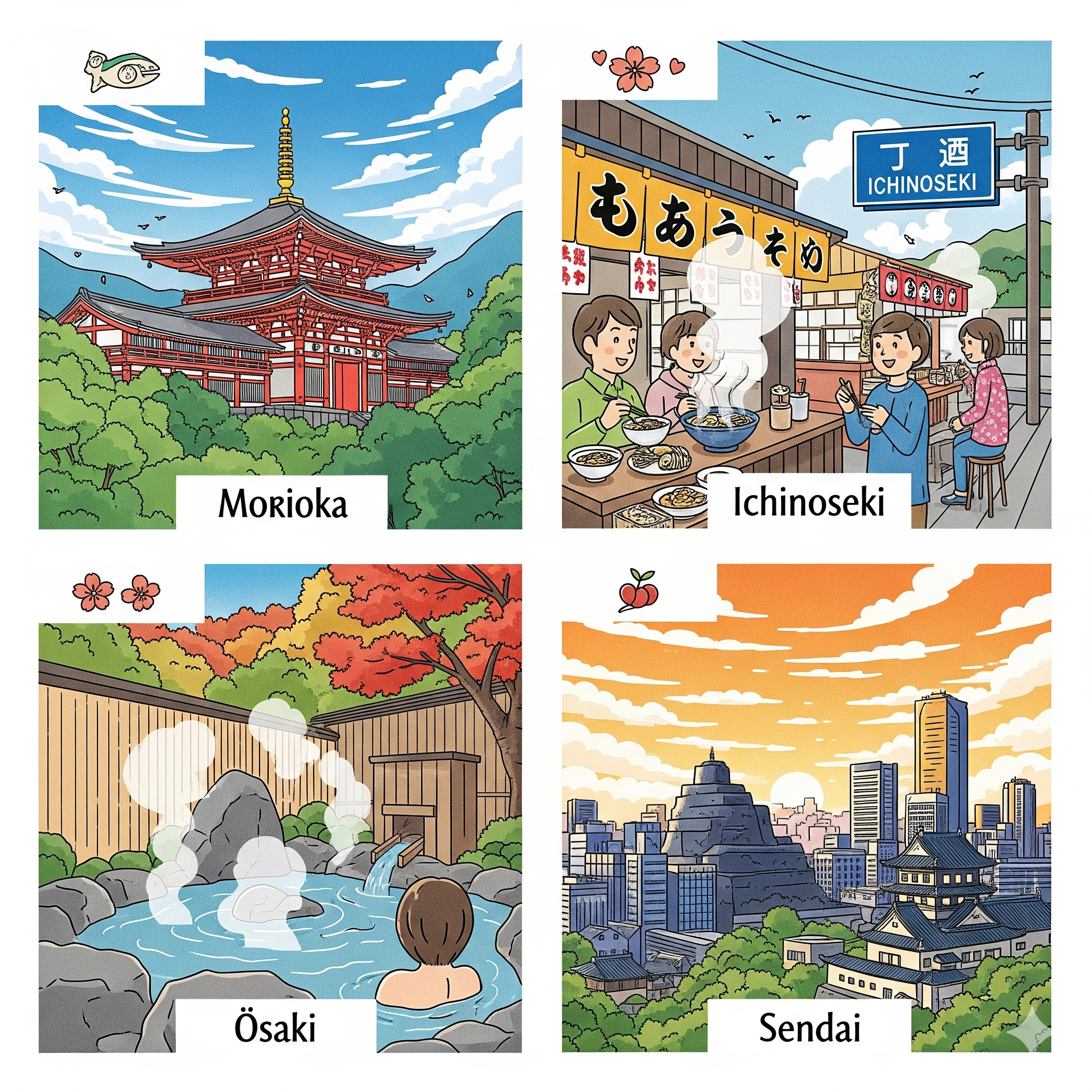 岩手県盛岡市、一関市、宮城県大崎市、仙台市を巡る、ガイドブックには載っていない穴場スポットをご紹介します。公共交通機関を使ったアクセス方法や料金情報も網羅しているので、個人旅行の計画にぜひお役立てください。
